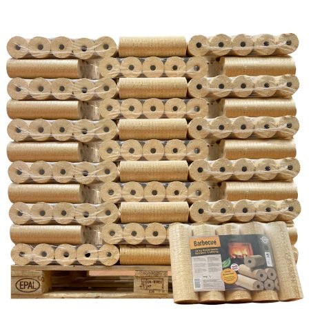 Barbecue Holzbriketts 100×10 kg: Hohe Heizleistung bei geringem Verbrauch. Eignen sich fĂĽr lange Abende am Feuer. Leistungsangabe 10 kg.