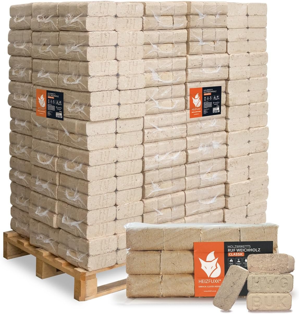 HEIZFUXX Holzbriketts Weichholz Ruf Classic Brenn Holz Grill Smoker: Robust und alltagstauglich. Geeignet fĂĽr Kamin und Ofen. Leistungsangabe 10kg.