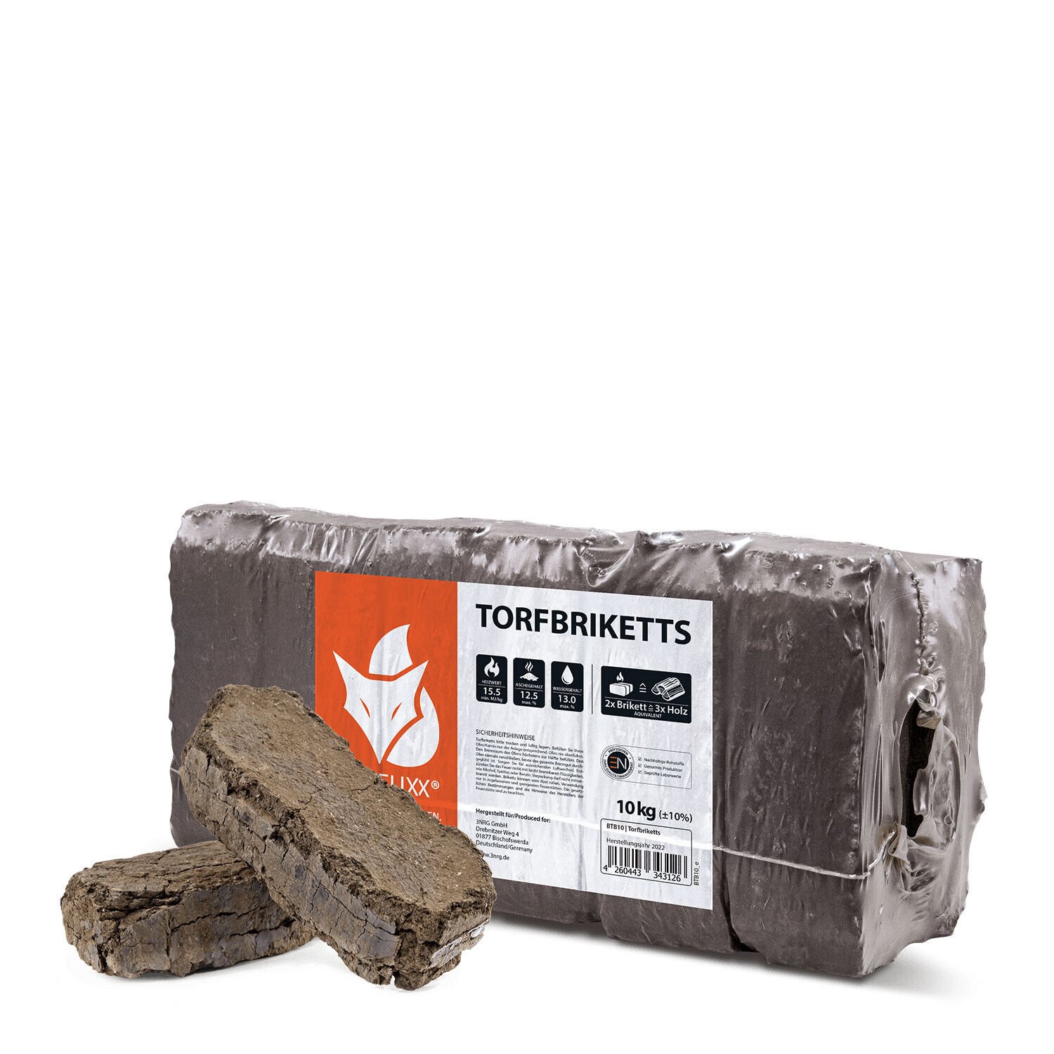 Heizfuxx Torfbriketts Braunkohle Torfkohle 10kg x Palette: Schnell spürbare, gemütliche Wärme im Wohnraum. Für gleichmäßige, angenehme Wärme. Leistungsangabe 10kg.